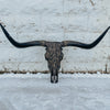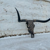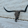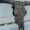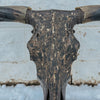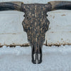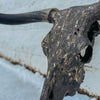 Dark and Bold // Black + Blue horns with an oil rubbed bronze base. Textured charcoal lightly grazed with old gold. Gold leafing, and a midnight grey accent over top. The texture and finish on this beautiful piece is so grand in person.